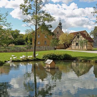 The enchanting town fascinates visitors with its medieval flair. To this day most of the town’s wall is still standing, surrounding the town. At the edge of town you can find the well-known ‘Freiland Museum’, a museum which teaches its visitors about how life used to be in the past. You can experience the old farms, churches, mills and inns on more than 12 hectares of land. After visiting the museum, we recommend a train ride on the museum train which takes you through four different towns in the Rhön.